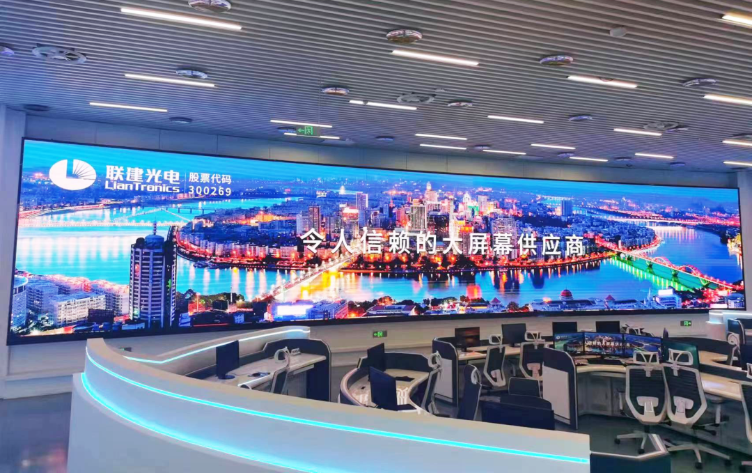 联建光电COB超高清大屏采用自研COB集成封装技术,画面对比度大幅提升,黑的深邃,亮的通透,彰显细节,清晰流畅,可精准展示全省供电服务管控中对于数据采集、数据展示、指挥调度的需求。