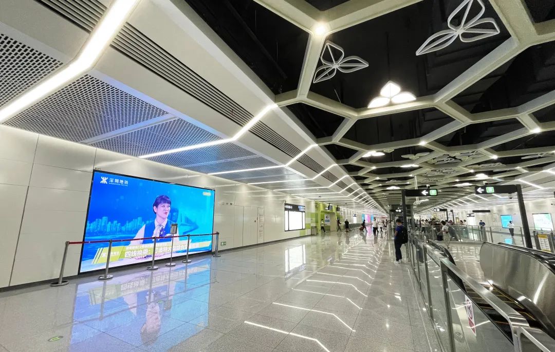 联建光电打造的轻薄大屏不仅“有颜”,还“好用”。高效散热性能让乘客近距离观看也不会产生不适热感;真空镀膜、IP65户外防护等技术让大屏在人流量大的地下环境中依然持久运行。同时采用Vmini微间距显示技术,全倒装COB封装,成就超高清画质,绝佳的屏幕位置也极易吸引乘客注意,“吸睛”的同时也“吸金”。地铁项目复杂,地下施工环境恶劣,联建光电派出专业工程师实地勘查、确认点位、现场安装,以保项目顺利完成。