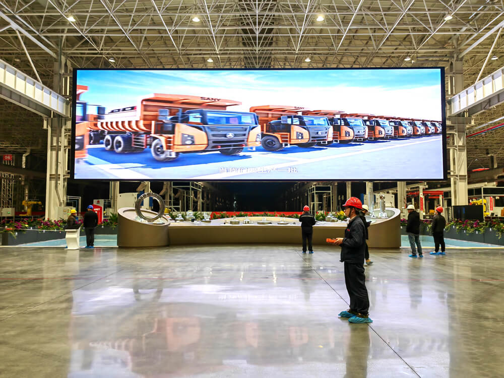 联建光电为西安三一重工打造的220㎡智慧显示解决方案位于“灯塔工厂”厂房参观通道内,用于生产动态数据可视化呈现,这套显示解决方案的应用也是“数字化制造”的最佳体现。