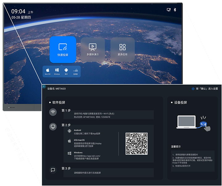 支持Android,iOS,Windows及Mac OS系统投屏;