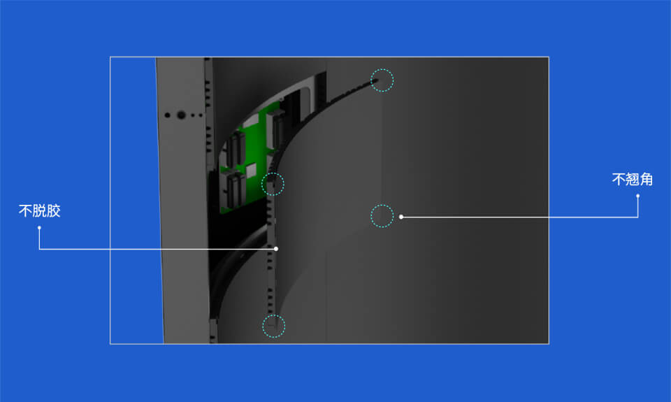 VA MIN可与VAⅡ系列标准箱体无缝拼接,连接曲面丝滑过渡