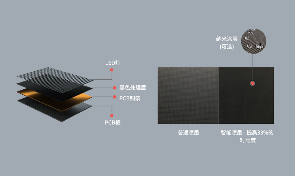 专利智能喷墨技术,万级高对比度,显示更出色;独有纳米真空镀膜技术,对比度提升33%,防护加码,防止瞎灯,“毛